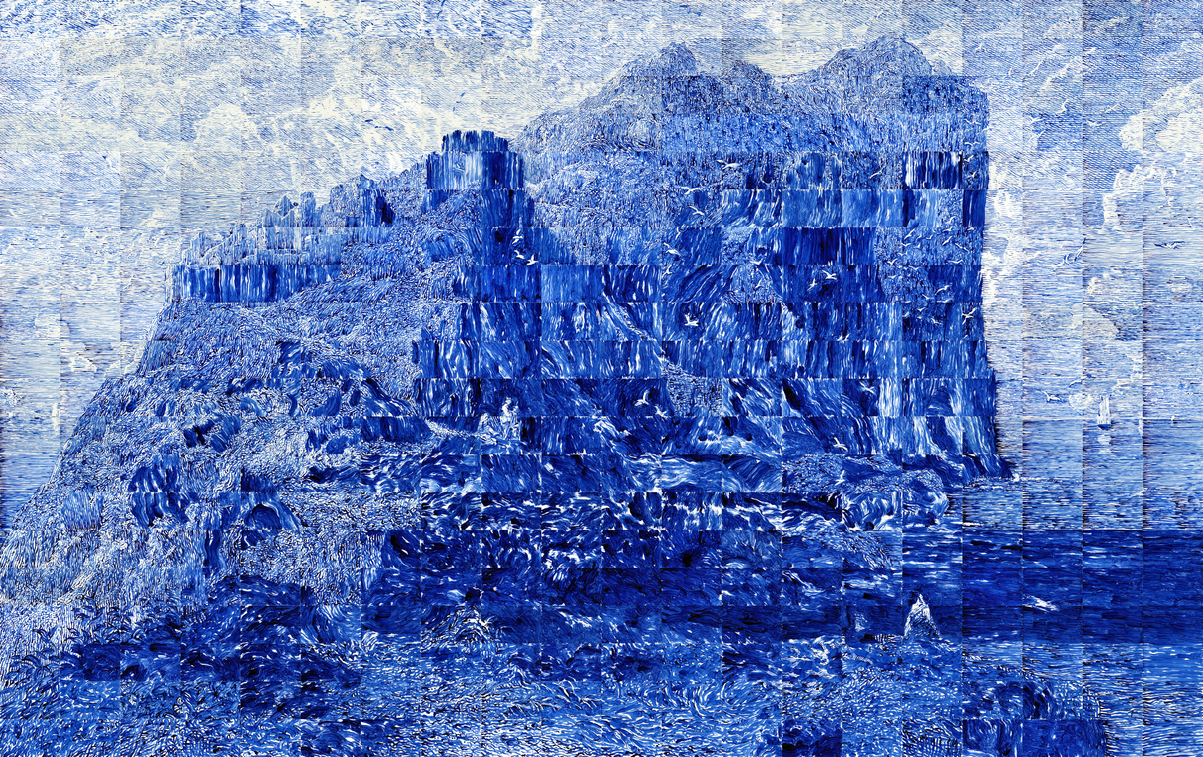 There are as many paintings of the glorious Bass as there are gannets on it, and here is another. Based on an iteration of an iteration, a painting by Minister of Duddingston John Thomson (not the skating minister, but the one who had 14 children and coined the phrase we’re a' Jock Tamson’s bairns) then transformed in print by Turner’s engraver, The Scotch Quaker, William Miller at the peak of Scottish romanticism. I came across the print in a boot sale, instantly enthralled by the exciting and perceptive tooled marks on the page. Expression and gesture. Searching online for an image of Thomson’s original painting was unsuccessful. Perhaps it doesn’t exist.